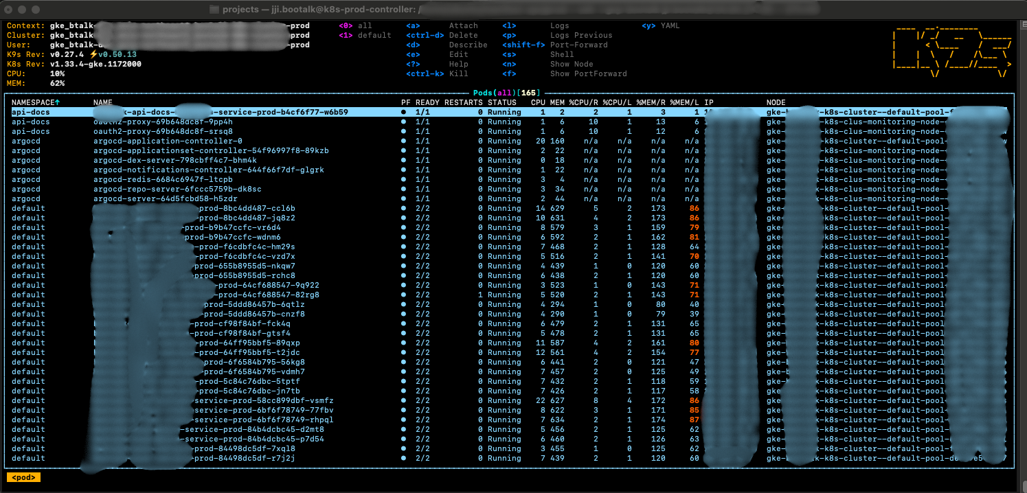 노드들에 잘 떠있는 파드들을 보고만 있어도 뿌듯해집니다.. 그 전에는 제 개인적으로 공부하고자 쿠버네티스 클러스터를 구성해본 적은 있지만 제 손으로 직접 회사 서비스를 운영 중에 무중단으로 쿠버네티스 환경으로 이관에 성공하고 구축했다는 게 엄청 큰 만족감을 주더라고요 😊