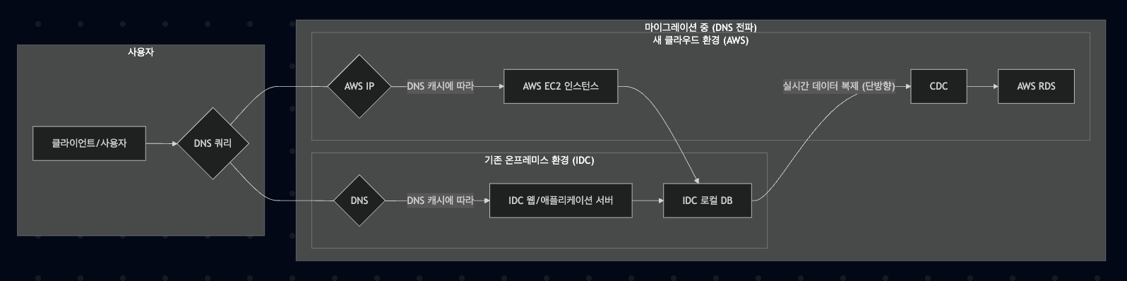 - 이중 운영: DNS 변경 후 전파 기간 동안 IDC와 클라우드 양쪽 모두에서 서버 운영